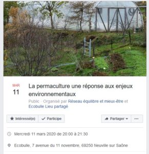 2 evenements interressants Posted on 3 mars 20203 mars 2020 by Marie Hélène une conférence le 11 mars de 20h a 21h 30 Ecobulle 7 avenue du 11 novembre à Neuville le Troc’n roll Flyers TNR 2020 par...