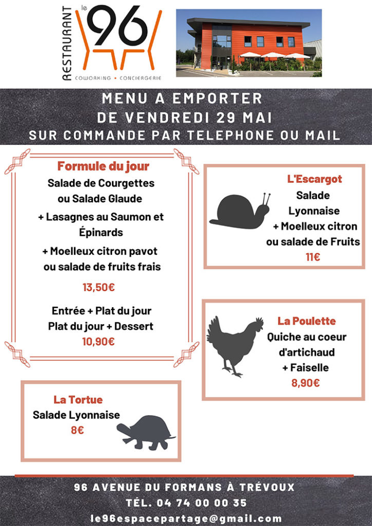 Le 96 restaurant « associatif » de Trevoux propose des plats a emporter