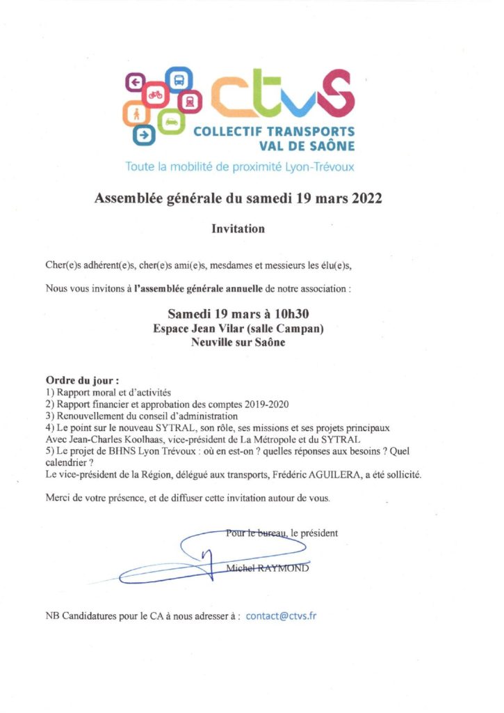 Assemblée générale du CTVS 19 mars 2022 10h30 à Neuville