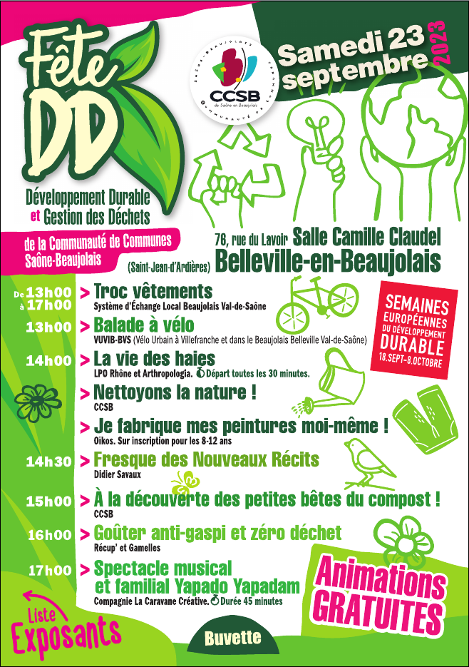 La CCSB de Belleville en beaujolais, organise sa première édition de la fête du développement durable qui se déroulera le samedi 23 Septembre prochain à...